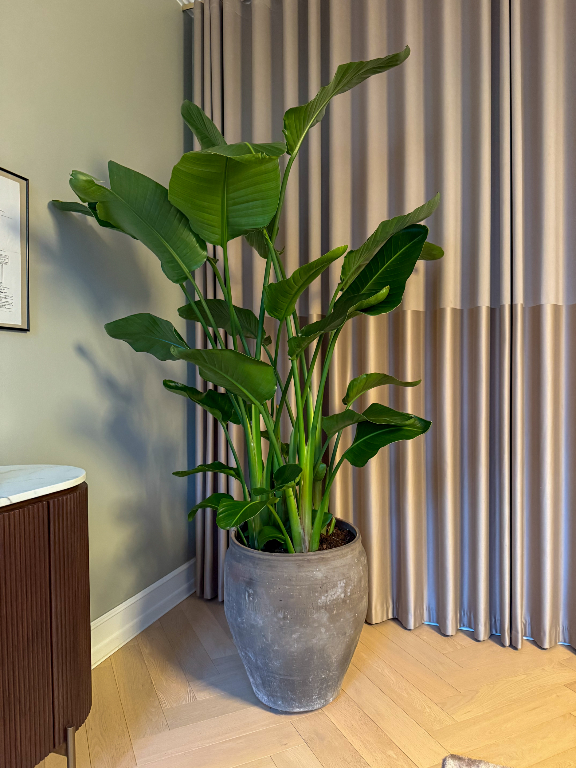 Vores Strelitzia Nicolai kommer fra det bedste gartneri, som har specialiseret sig udelukkende i denne plante. Alle vores eksemplarer er meget fyldige med frodige, friske og grønne blade.